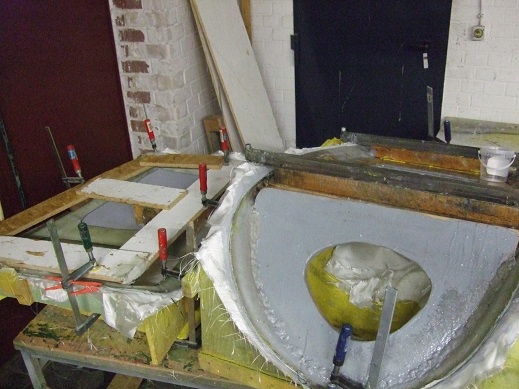 Es hat grad gepasst. Die nächsten Innenrahmen für Einstiegsluke (C4 = Cargo nr. 4) und Seitentüre (C3=Cargo nr.3) laminiert. Die Aussenteile müssen erst die Farbe bekommen bevor die laminiert werden. |
